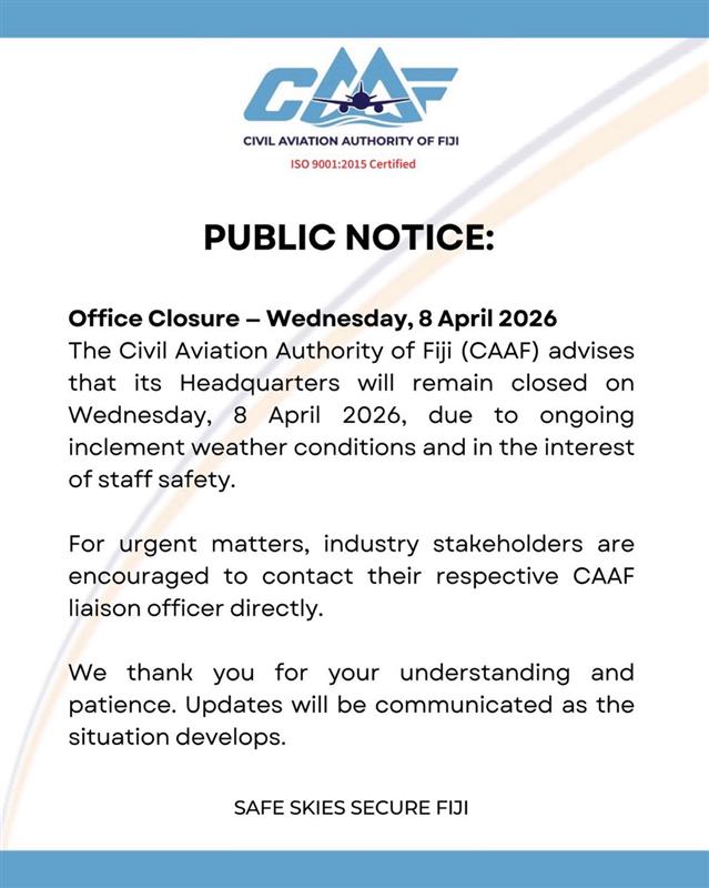 The Civil Aviation Authority of Fiji (CAAF) is responsible for regulating and overseeing Fiji’s aviation industry, ensuring safety and compliance with international standards. It provides services such as aircraft certification, airspace management, and licensing of aviation professionals. CAAF is committed to maintaining safety, security, and environmental sustainability in aviation operations, and plays a key role in promoting aviation development in Fiji.